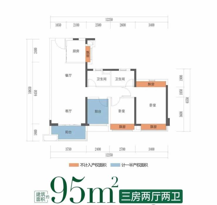 建筑面积约95㎡三房 | 小面积王炸户型,全盘仅售62套!