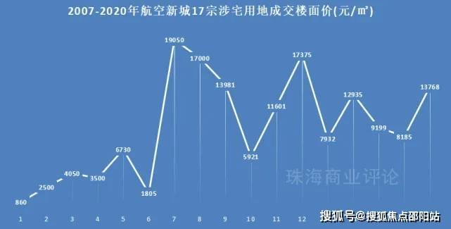 自2007年拍出第一宗地起,13年航空新城一共出让17宗住宅用地,地价从860元/㎡上升到最高19050元/㎡,涨幅达22倍!