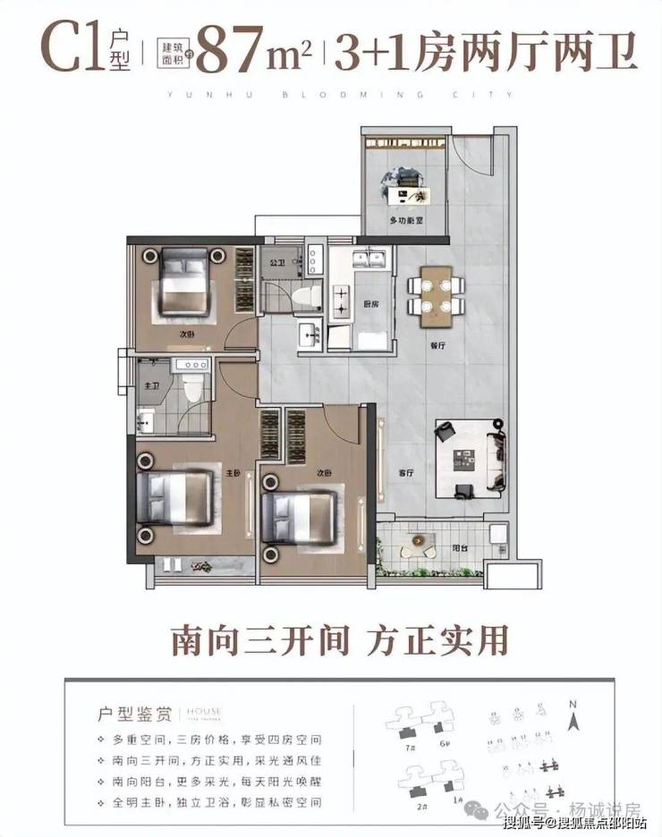 品实云湖花城打造70-140㎡全龄户型,创新N+1可变空间设计,三至六房灵活布局,满足家庭成长各阶段需求,以高性价比诠释主城品质居住新标准。