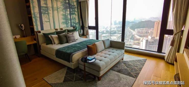 主卧5.25米的开间,搭配大面积落地玻璃所带来的无遮挡视野,尊贵感十足。
