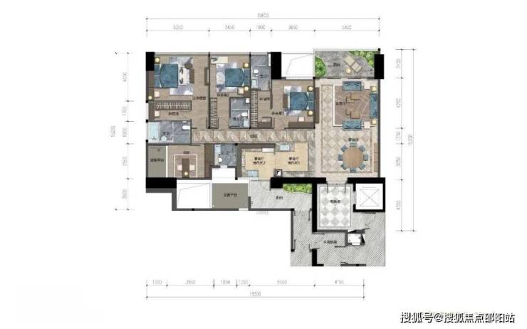 样板房设计为3个套房,每个面积都相当可观。