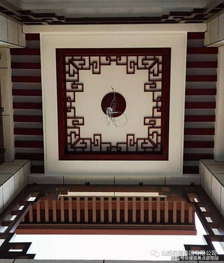 吊顶设计造型唯美、层次分明、格调高雅,堪比星级酒店,高端大气,再加上中式实木多彩节能灯光的辉映,冬温夏凊、金碧辉煌;