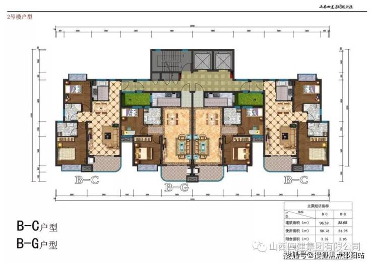 B-C户型96.59㎡ B-G户型88.68㎡
