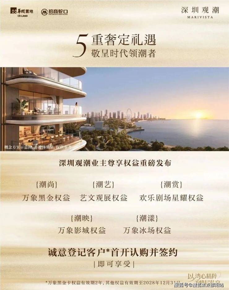 还有一个彩蛋:华润置地将整合生态资源,为深圳观潮的准业主们提供专属五重权益,诚意登记客户首开认购并签约的客户即可享受。