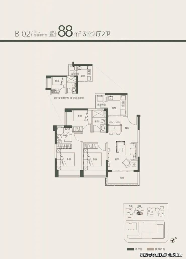 3、88㎡ 3房 (5楼2套)