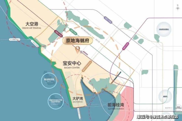 京地海樾府项目位于深圳前海宝安中心区碧海区域,宝源路与金海路交汇处,总占地面积1.79万㎡,地上总建面约11万㎡,地下总建筑面约6万㎡,定位为高端城市综合体,其业态包含建面约55-105㎡2~4房高端住宅、星级酒店、精品公寓及办公。项目与地铁11号线碧海湾站无缝衔接,距离地铁1号线西乡站约700米,交通便利,是占据前海核心位置双地铁的优势资源