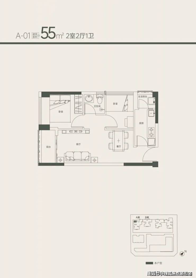 1、55㎡ 2房(5楼4套)