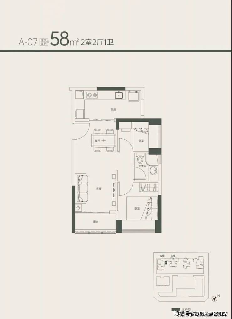这种面积段产品如今在新盘市场上很少见到做到两房+两阳台的,对于小户型来说多个生活阳台是大加分项。