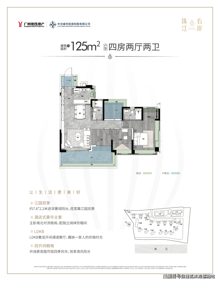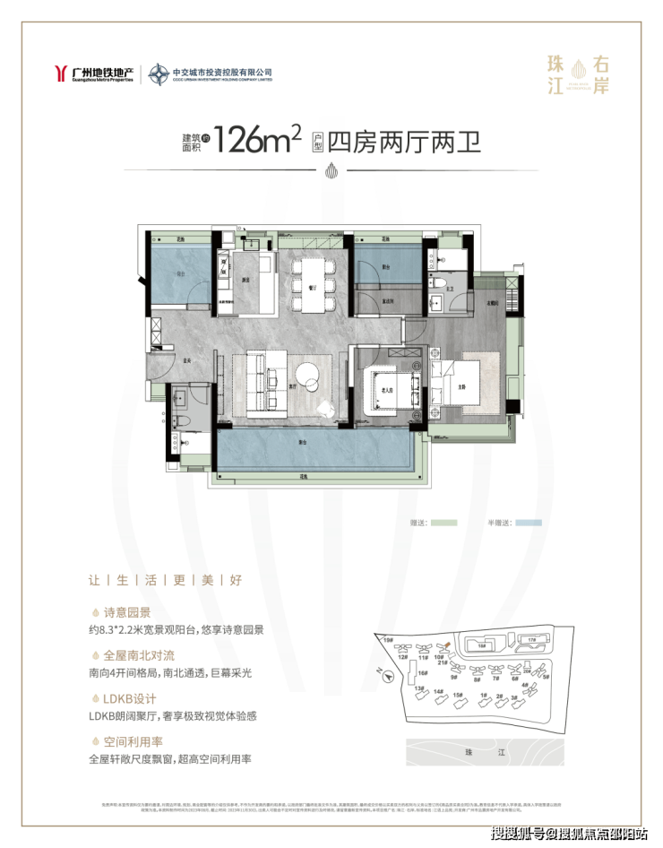 四开间朝南,主卧还采用南北对流设计,观景阳台长达近8米……