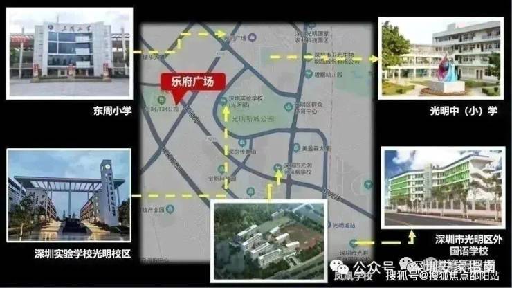 2019年光明区政府推出公寓入住满一年也能申请读书政策,乐府广场与多所名校为邻,;约4km内全龄教育资源环伺,如深圳实验光明学校(深圳四大名校)、光明实验学校、光明区凤凰学校、东周小学等;