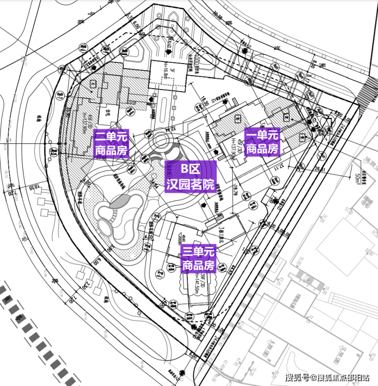 B区由3栋三个单元、裙房组成,其中一二单元层数45层,三单元层数39层,总户数474套;套内面积小于90㎡的有369套,占比77.85%,均为商品住宅。