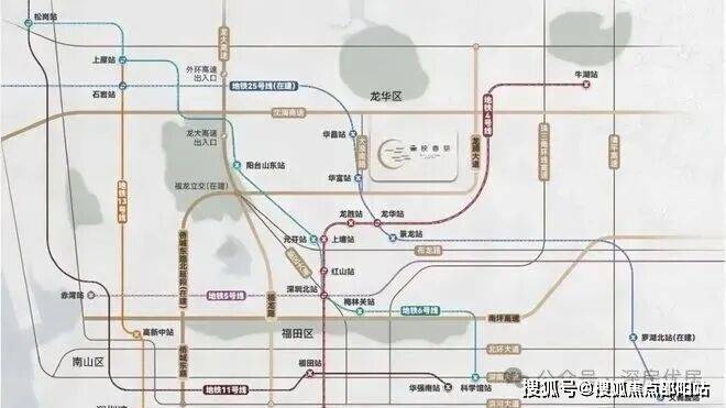 交通配套:项目紧邻龙澜大道城市快速路,自驾出行便捷,通过福龙路可快速接驳福田、南山核心区,车程约40分钟。公交方面,1公里内设25个站点,M188路等线路直达项目门口,可换乘地铁4号线、6号线及多条公交线路。地铁方面,距离规划中的25号线华富站约600米,该站位于英泰路与华盛路交汇处,计划2028年12月28日竣工通车,建成后可无缝换乘4/6/13号线,畅达全城。