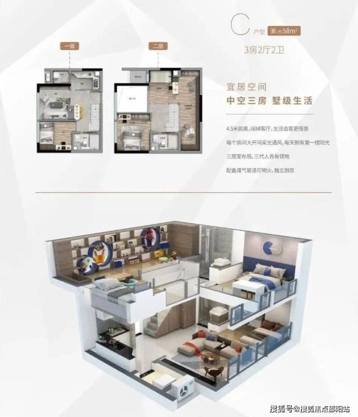 产品户型: 33m²、50m²、58m²复式