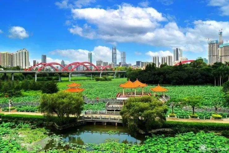 北揽洪湖公园和东看梧桐山,南眺香港繁华城市夜景,周边环绕荔枝公园、洪湖公园、人民公园、儿童公园、文化公园等五大公园。