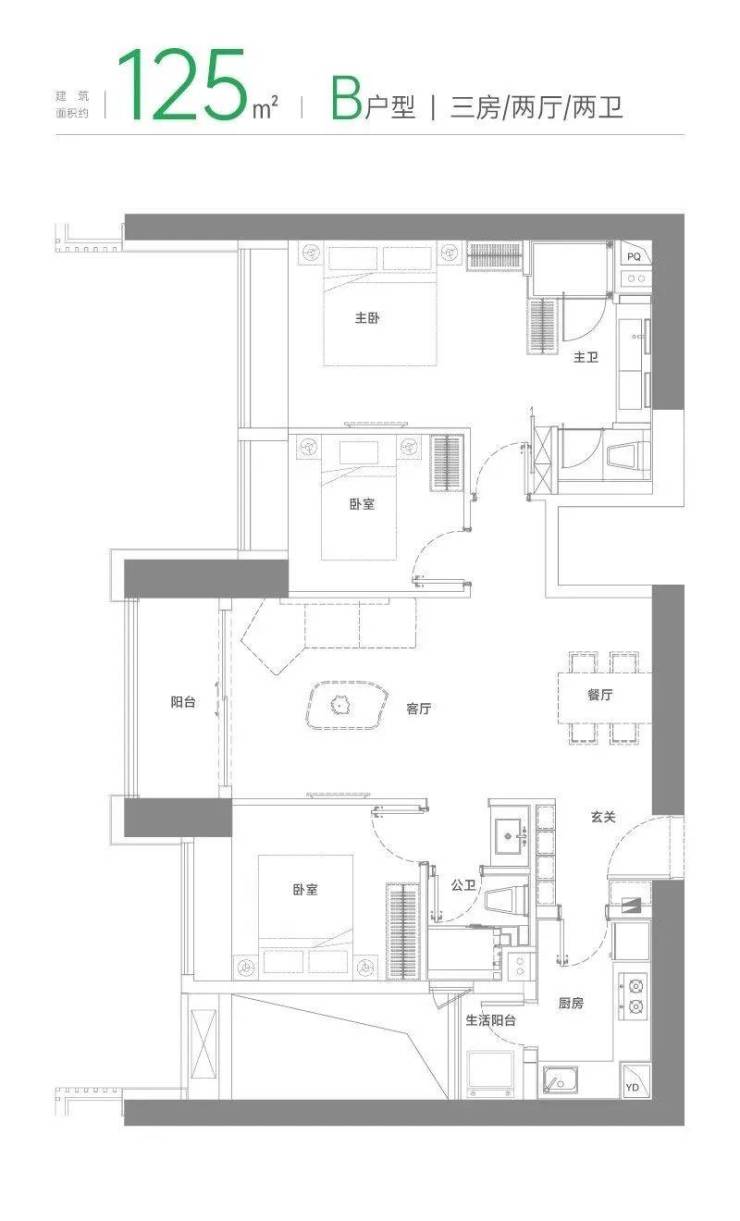 瞰景三房,飘窗、阳台拉开居住视野,主卧私享功能产备LDK 一体化设计,打造无边界、社交化的餐客厨系统动静分区舒适化营造,休憩与家庭活动互不干扰双阳台设计,厨房连通生活阳台,延展更多空间,随心收纳户型