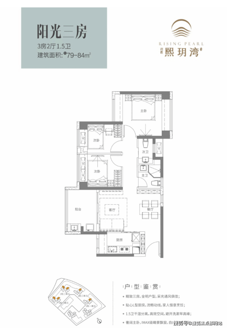比如起始面积段建面约79-84㎡不仅得房空间可满足三代同堂,创新型的1.5卫设计,实际使用功能完全是两卫,在这样的面积段里十分难得。