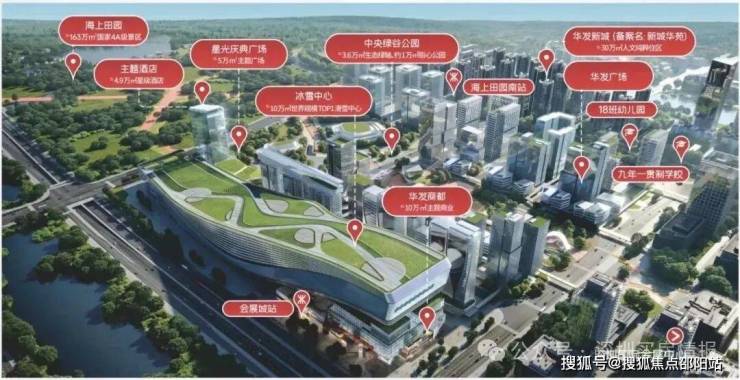 区域核心优势凸显,区别于传统老城区,会展新城整体规划起点高、城市界面纯粹,无城中村与老旧厂房,周边均为新建商品房社区,居住圈层统一[6]。作为深圳西部发展的核心增长极,国际会展中心已开业,直接带动相关产业收入约1350亿元;海洋新城预计2035年建成,产值规模将达7000亿元;华发冰雪世界、海上田园等文旅配套加速落地,未来将形成“产城融合、职住平衡”的现代化新城,区域价值持续攀升[6]。