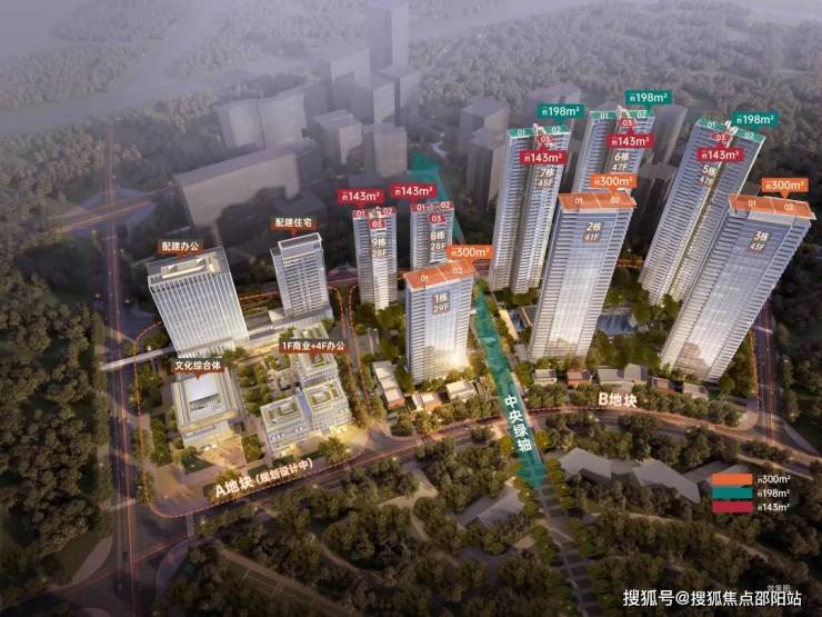 项目内部分作A、B地块,A地块将建设文化综合体、商业区、写字楼等;B地块塑造高尚住宅区,约建面约143-195-300平高端改善产品。