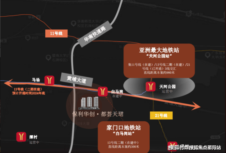 项目交通网络四通八达,三横三纵的主干道贯穿其间,无论是前往珠江新城、金融城还是其他城市热点区域,都能实现快速通行。同时,项目紧邻天河公园站和白马岗站两大地铁站,尤其是天河公园站作为三地铁交汇的枢纽站,未来出行将更加便捷高效。随着地铁11号线和13号线二期的建设推进,预计2024年底将正式开通,届时将进一步提升项目的交通优势。