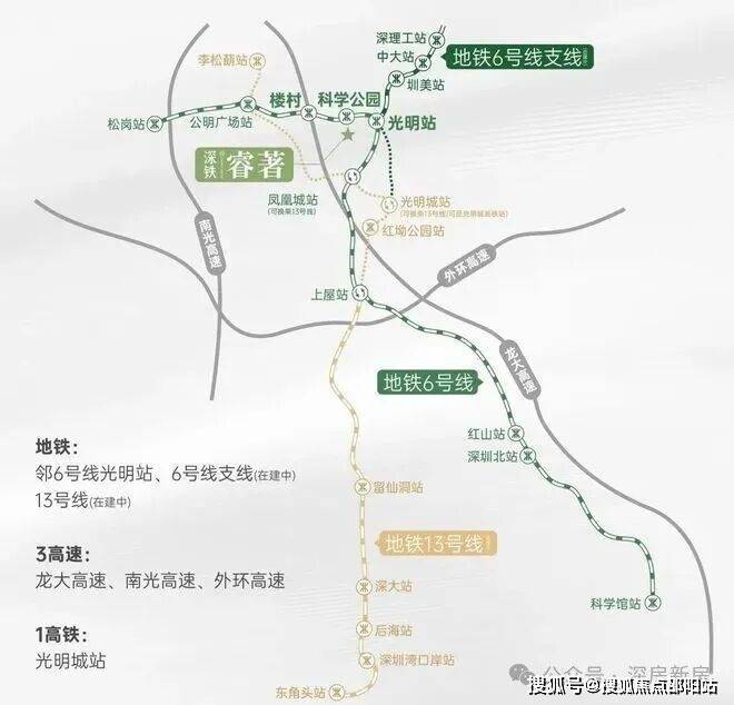3地铁:邻6号线光明站、6号线支线 (在建中)、13号线 (在建中)