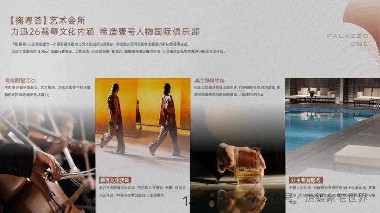项目主推建面约150-350m²单位,全盘只有120套。有「掬粤荟」艺术会所、威士忌博物馆和WiseCare服务体系。