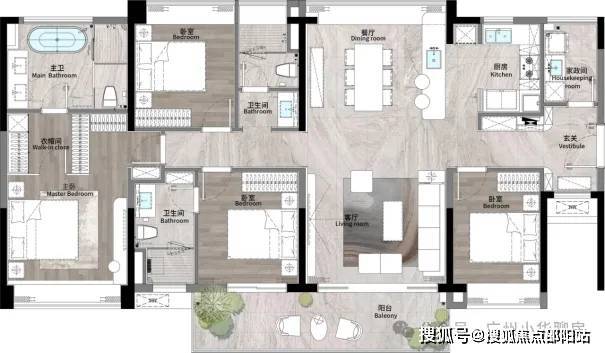 ——全家人的阳光SPA三面采光,光照时间无限延长,生活更敞亮;——跑道式阳台,不受空间拘束约7.7米超长阳台,在家就能打高尔夫;——奢阔主卧套房,二人世界的浪漫天地约34.7m²五星级超大主卧,洗浴-更衣-赏夜-入眠尊崇生活;