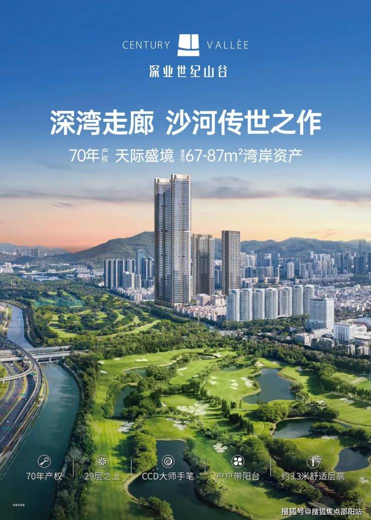 深业世纪山谷位于南山区沙河东路218号,占地面积约4.2万㎡,总建筑面积约38.9万㎡,是集住宅、公寓、酒店、商业和办公等多种业态于一体的城市综合体项目。项目位于大沙河生态长廊之上,西临约200万㎡果岭名商高尔夫球场,推窗可享一线果岭生态景观。而且南向可以俯瞰深圳湾海景,以及地标建筑春笋和跨海大桥,把“名片级”景观尽收眼底。目前片区能够同时拥有一线高尔夫果岭景观+深圳湾海景的宜居新房,真的是少之又少。