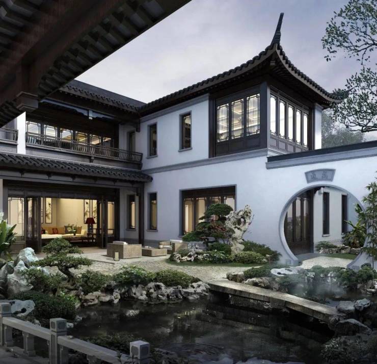 独栋别墅(500-1674㎡):采用铝构现代材料与传统中式戗角造型,搭配“流动景观”庭院与双观景露台,将山景引入室内