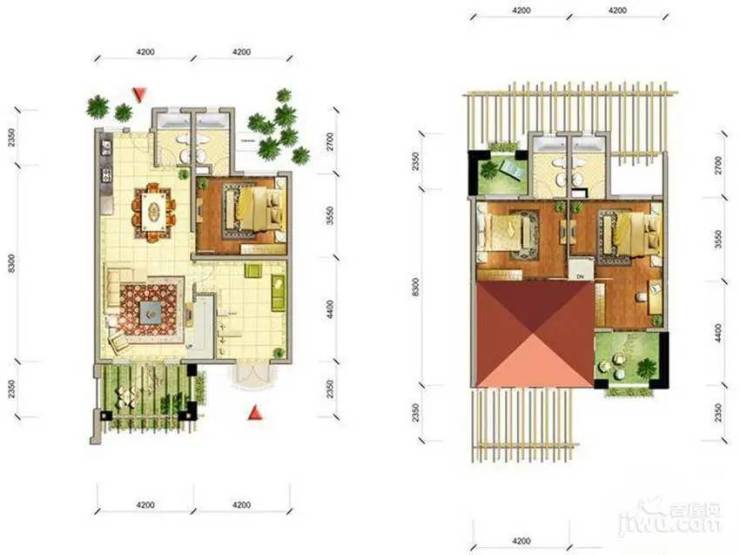 2室2厅3卫 108㎡