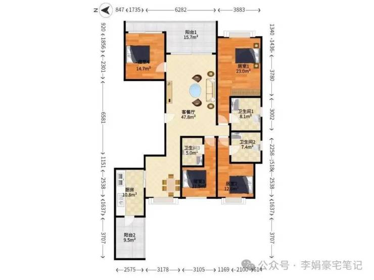 明星户型:166-172㎡四至五房