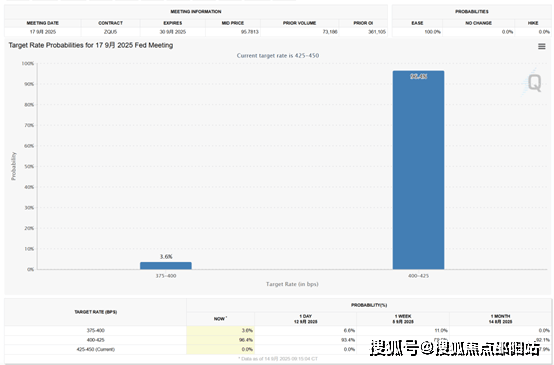 尽管特朗普声称美联储将“大幅降息”,但目前来看,本周降息50个基点的可能性并不大。据CME“美联储观察”,美联储本周降息25个基点的概率达96.4%,降息50个基点的概率仅为3.6%。