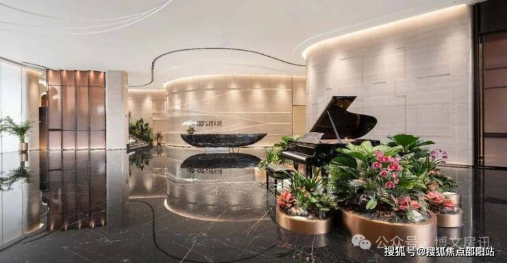 ◎超星级酒店式大堂,国际豪宅专家HWED执笔设计,以“时间艺术中心”为设计理念,注入全球奢华酒店基因的尊崇礼遇;地面进口的温德姆黑大理石、墙面的法国木纹大理石、用心铺陈的奢石仿佛就像生长在这里一样,整个大堂地面如同湖面,巴西黑金石打造的接待台如同一叶扁舟停靠在湖泊上。