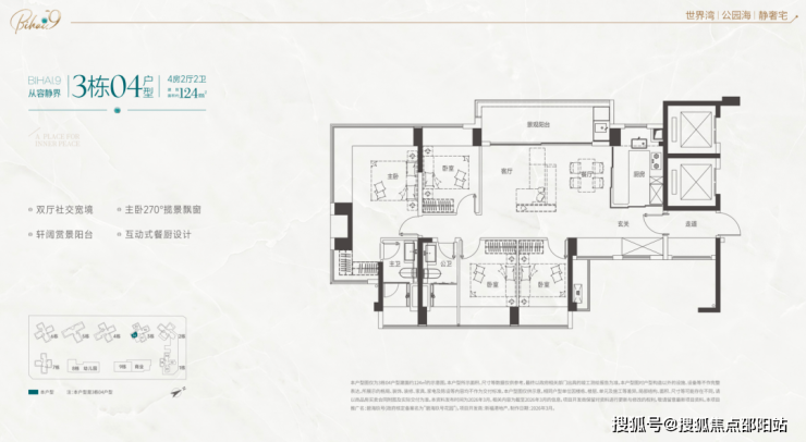 六、户型体系:约 105—124㎡纯四房,全明通透