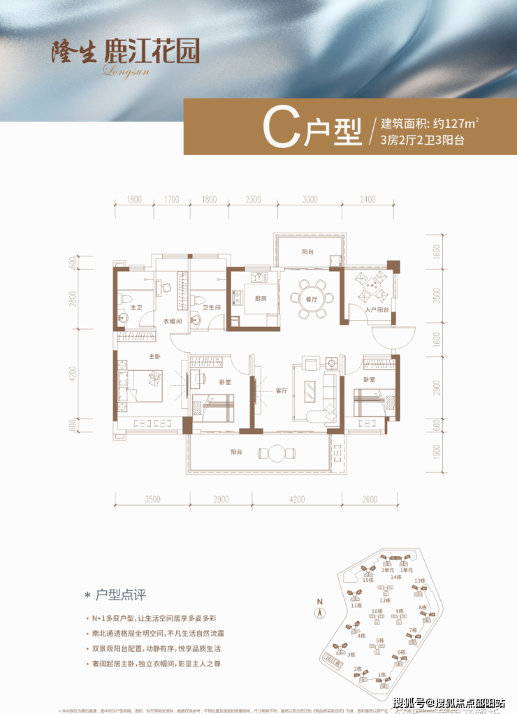 隆生鹿江花园综合体大城,高尚住宅主打改善型居住为主,户型规划106-150㎡三至五房,其中60%为140-150㎡大户型为主,区别金山新城其他纯刚需楼盘,确保高端居者享受更纯粹的圈层。购买人群基本为周边事业单位、公务员、企事业主、公务员,其中60%均为隆生老业主重购及老带新认购,优质圈层可见一斑。