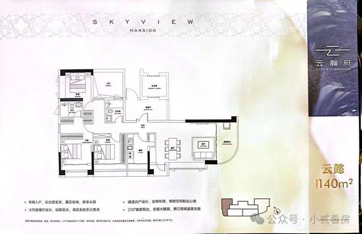 140㎡南向4房2厅2卫:六开间超南,超17米南向面宽,四面采光单边户