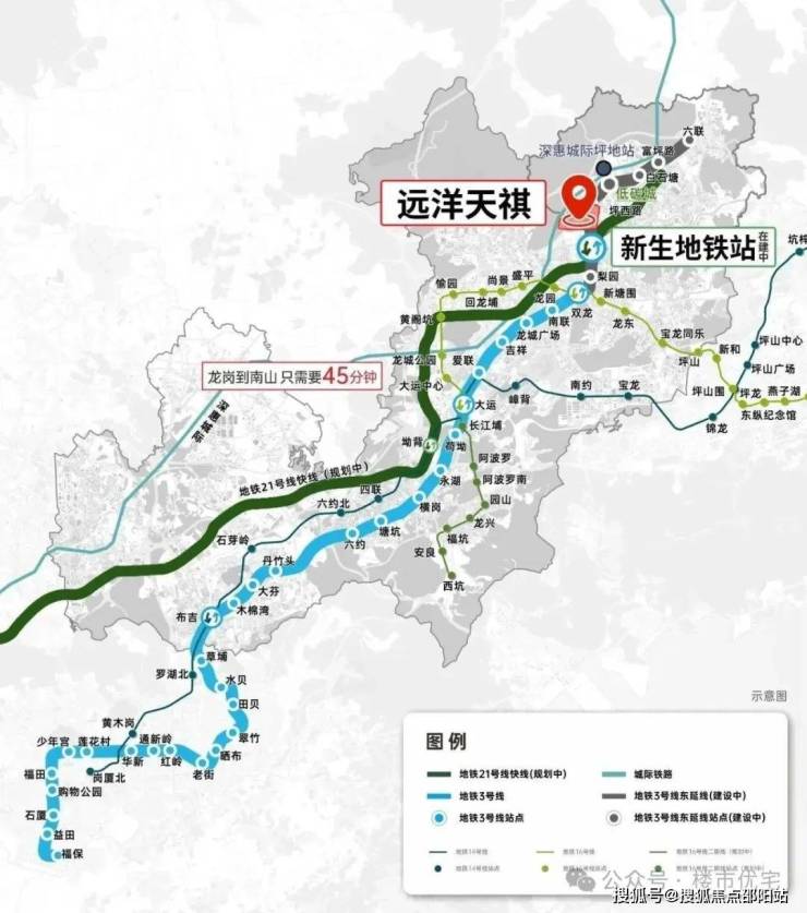 远洋天祺由央企远洋集团开发,位于深圳龙岗坪地新生片区,总建筑面积约9.7万㎡,容积率5.74,绿化率40%,规划3栋46-47层超高层住宅,含768户精装交付房源,预计2025年12月交房。