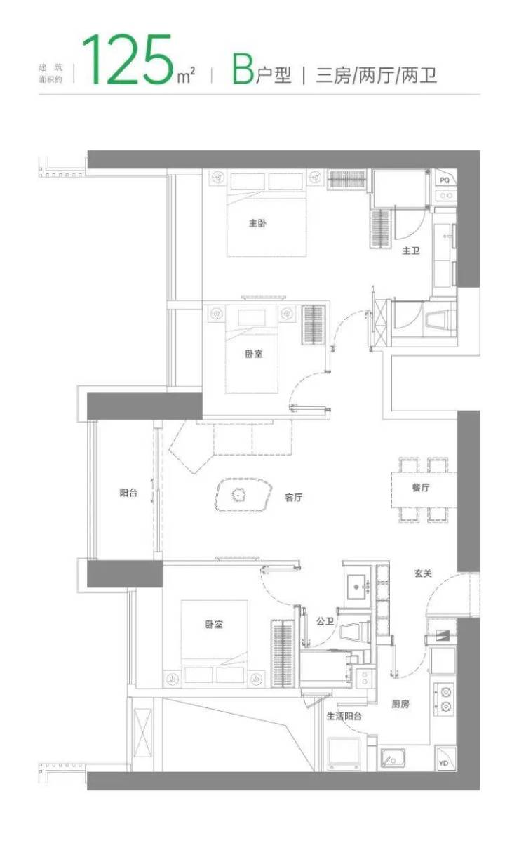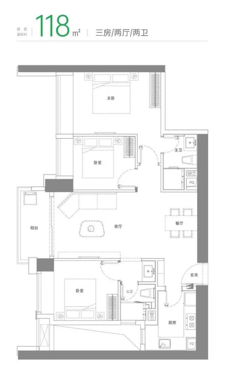 :南北双阳台+3.15米层高,但仅配置双卫,厨房无生活阳台。