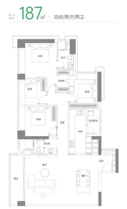 优先选择带专梯入户的187㎡户型(二手溢价空间更高)。