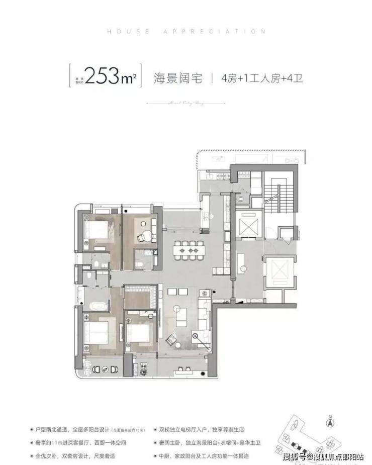 3-4单元为总高53层的商品住宅楼,4梯3户,总计约848户。