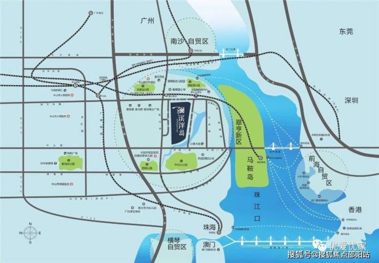 水上交通:可从项目到达中山港码头,可以坐船去深圳福永码头、直达深圳福永机场,也可坐船到达香港中港城码头。新中山港码头规划在马鞍岛,预计2018年完工。