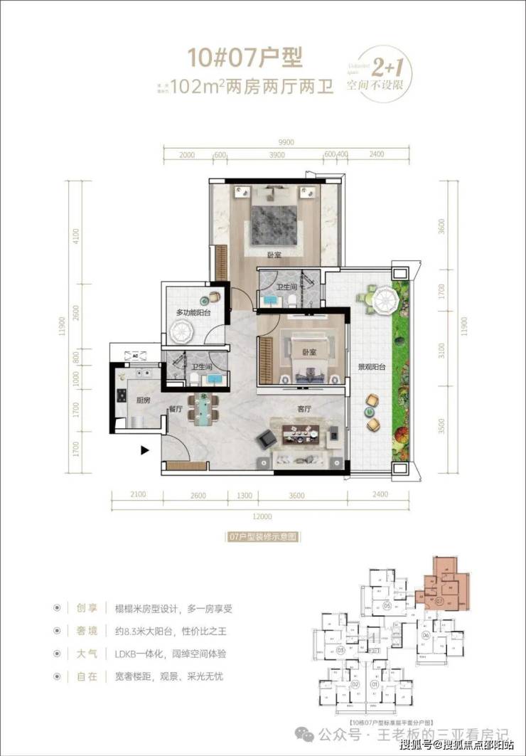 ❥❥10#2T6(07号位户型鉴赏)🏡约102㎡两房两厅两卫(2+1)房🏡约8.3米顶配阳台,延伸假期美好想象🏡创新榻榻米设计,空间体验不再局促🏡高质精装交付,轻松享受拎包入住
