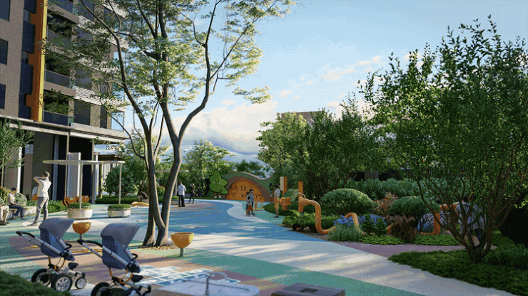 除了4000㎡的儿童乐园外,小区还在园区内留出了一个约700㎡的大草坪。在这里可以搭帐篷、看露天电影、开生日Party,甚至可以来一场萤火虫音乐节。
