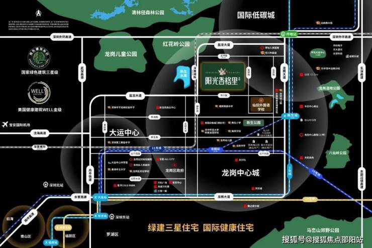 阳光香格里家园位于龙岗中心城与国际低碳城双核交汇处的新兴生态高尚住区,片区汇集十多个新盘,吸引片区高精尖人群,是龙岗新兴的高尚住宅居住圈。