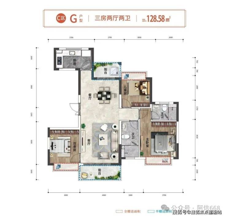 3、128平米三房两卫