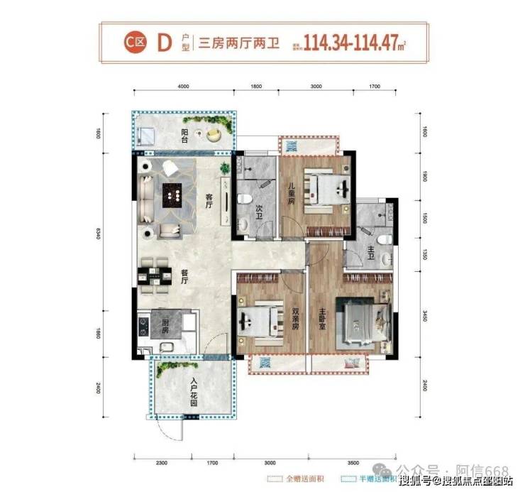 2、114平米三房两卫