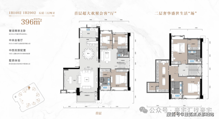 针对家庭不同结构的不同需求设计,分层而居,合而不扰。一层欢聚层以“厅”为主,超大会客厅,与知己同聚慢聊古今大事,更有窗外盛景给予悠远情怀,尊崇主卧系统可供老人颐养,尽享天伦之乐;二层休憩层,超大衣帽间、阳光书房,奢华生活排场滋养中国盛世家族。