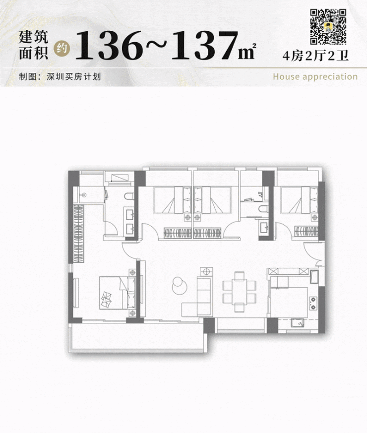 ◎ 建面约136-137㎡4房2厅: