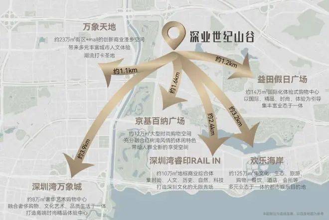 六大商圈层叠:位于深圳大型高端商业集中地,周边商圈包括益田假日广场、万象天地、京基百纳广场、深圳湾睿印、欢乐海岸、深圳湾万象城商业。