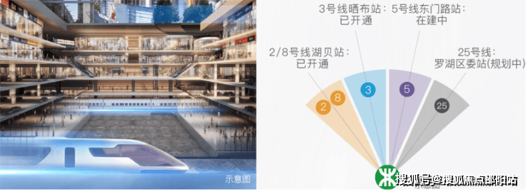 作为深圳最早的建成区,罗湖的交通优势也非常明显,占位5线4站地铁——湖贝站(2/8号线)、晒布站(3号线)、文锦站(9号线)、东门路站(5号线西延线,在建)、罗湖区委站(25号线,规划),未来将会实现年客运量6亿+人次。这就是5轨交汇带来的超级动力,将为项目源源不断输送亿万人流量。