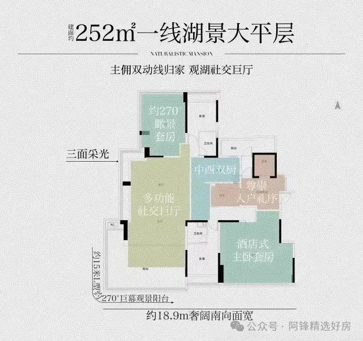 4,景观不错,45-52米的低密度小高层,按照“前低后高”的建筑高度控制,形成朝向湖区梯级跌落的设计,大地块西北向望湖景,小地块西向往湖景。